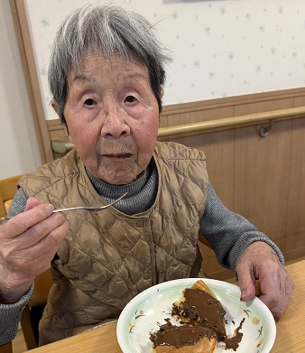今日はバレンタインデーです♡おやつはチョコでコーテイングしたホットケーキです♡