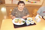 お膳の横のお花は、お孫さんから送ってきたお花です(*^-^*)